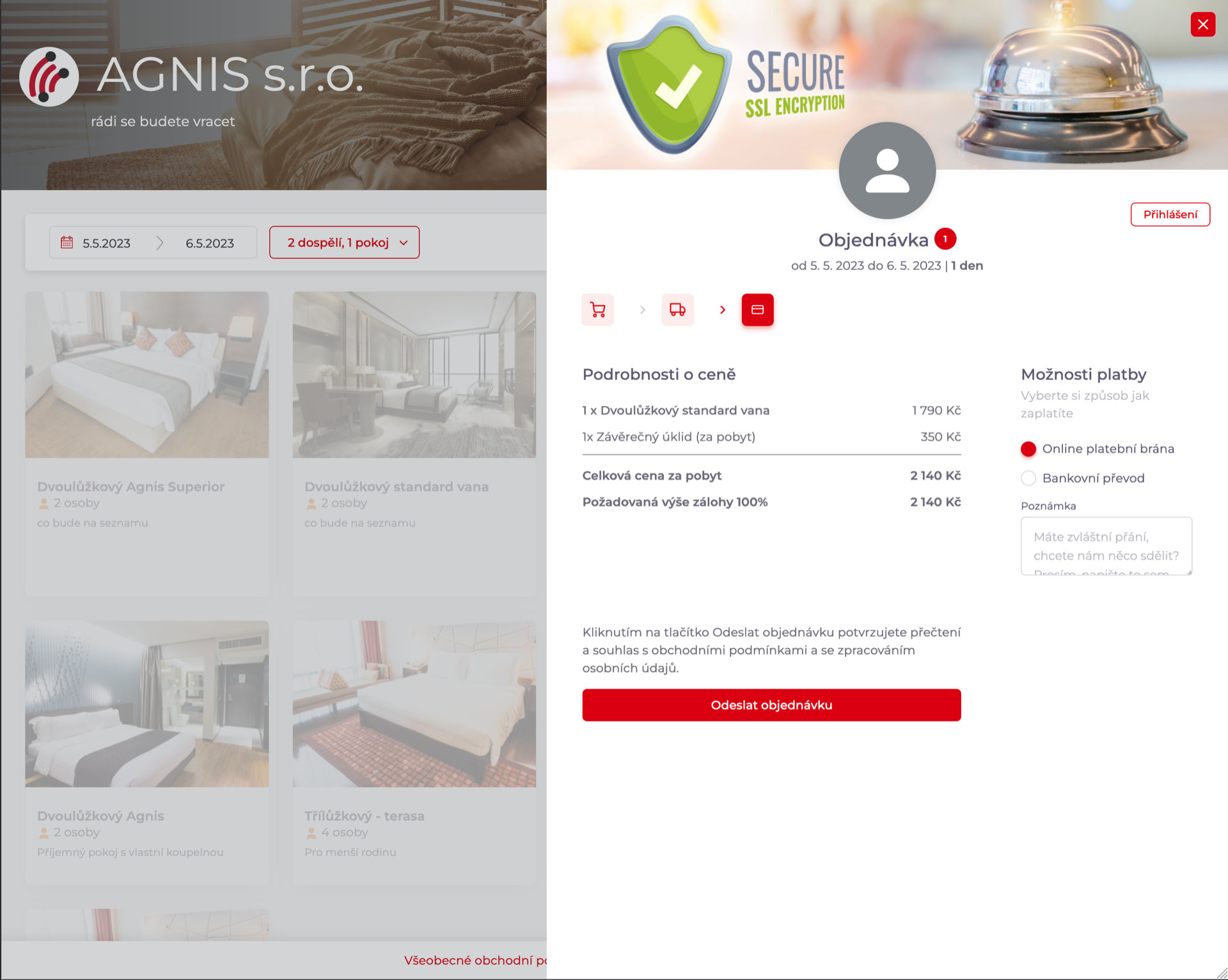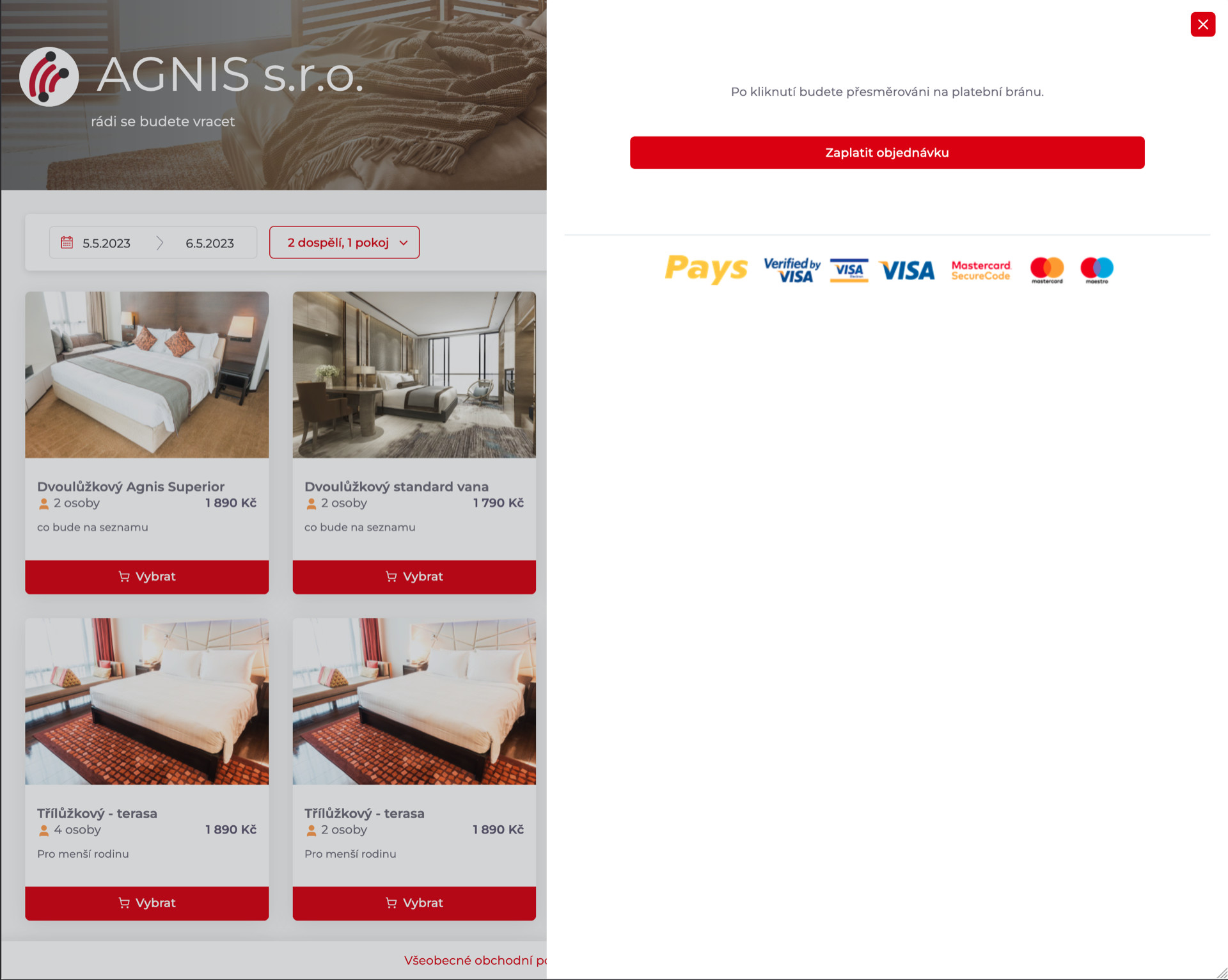 - Platba Možnost platby za ubytování přes internet prostřednictvím platební brány GoPay.