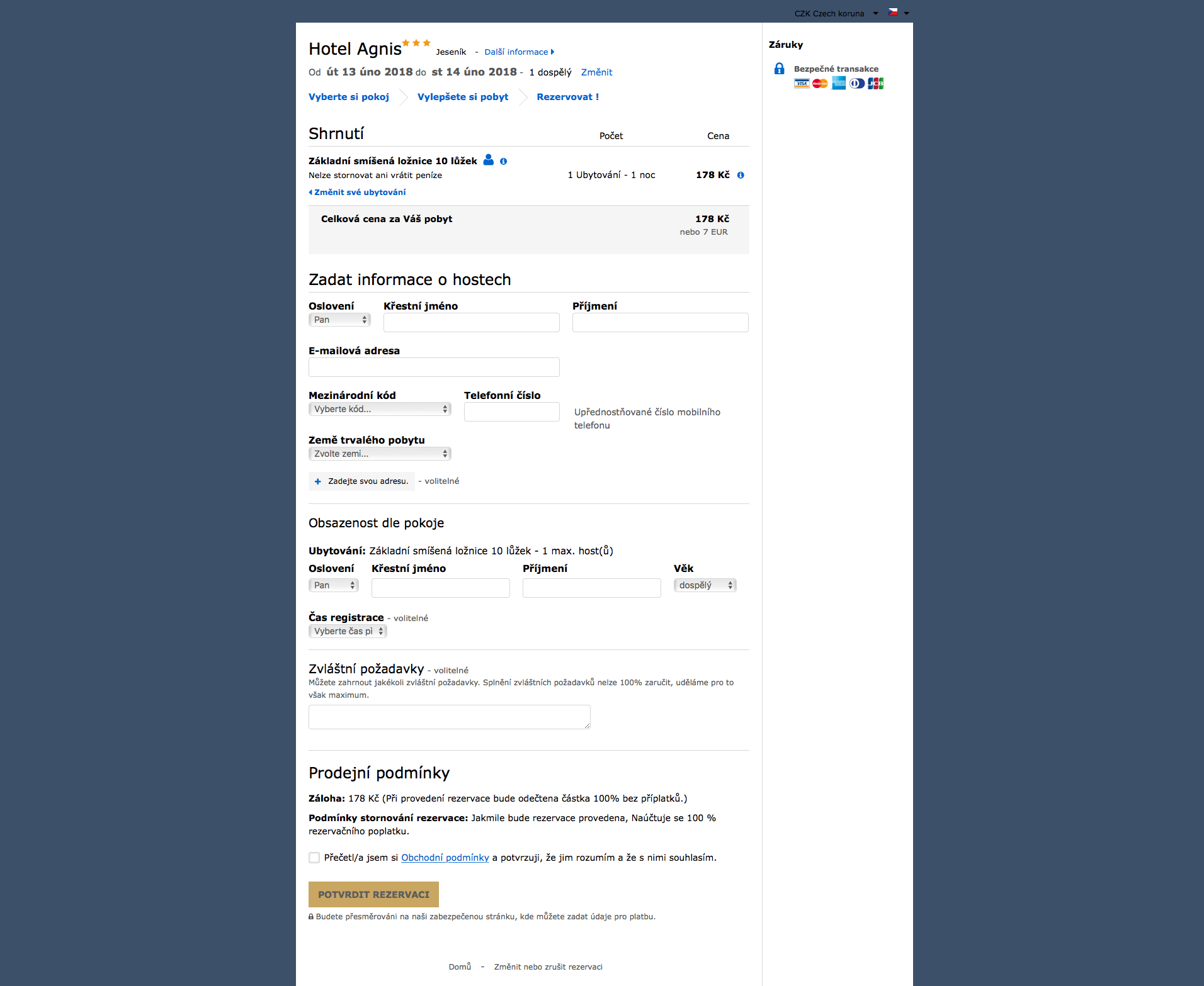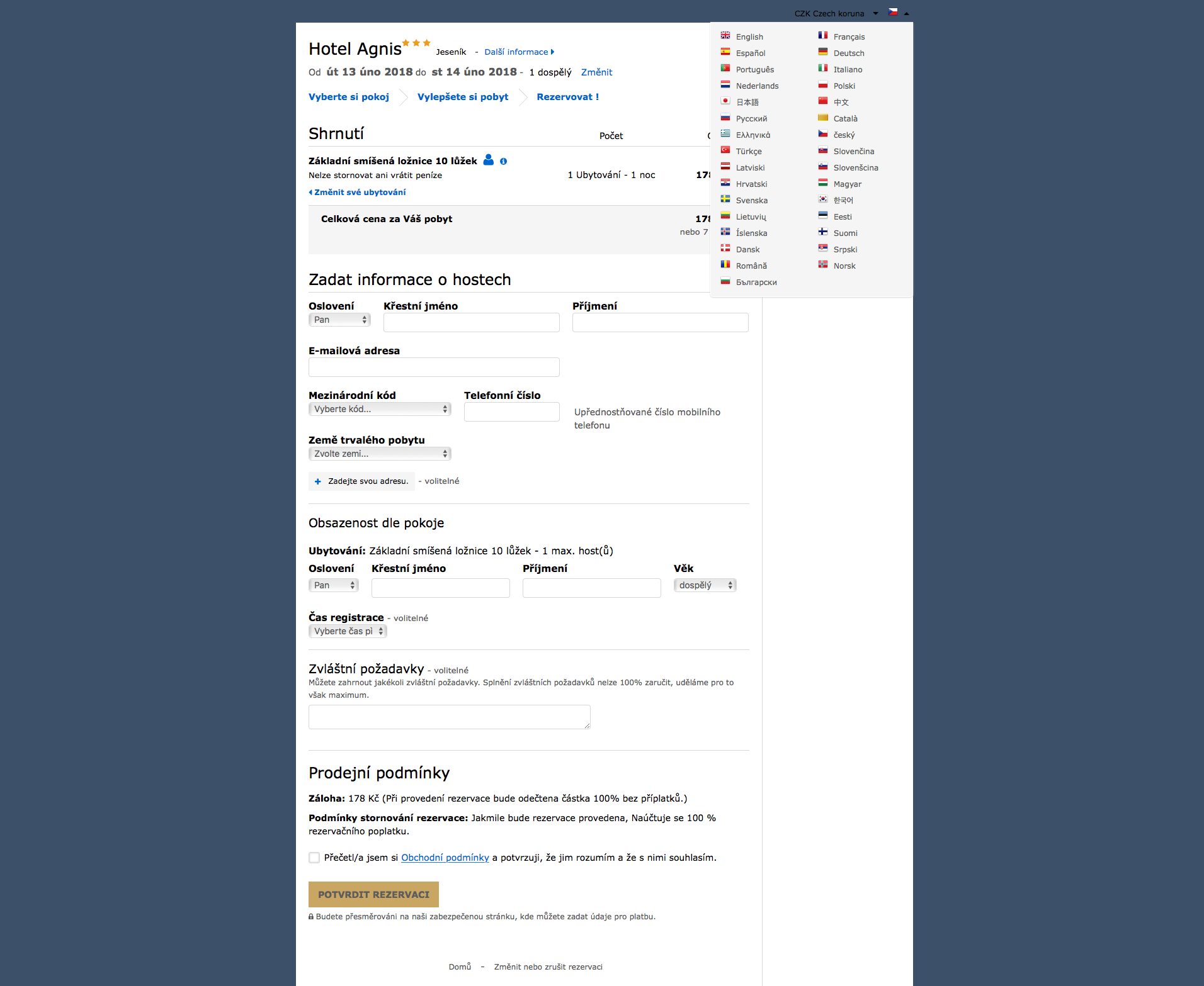- Potvrzení rezervace – Předtím než rezervace bude přijata, musíte tuto rezervaci potvrdit.